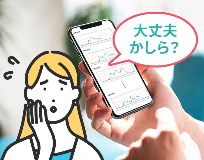 ⼀定期間(1か⽉、3ヶ⽉、半年や1年など)の過去データとの⽐較もできるので、⽣活リズムのずれや、顕著に異なる状況がないかなど、すぐに確認ができます。 -