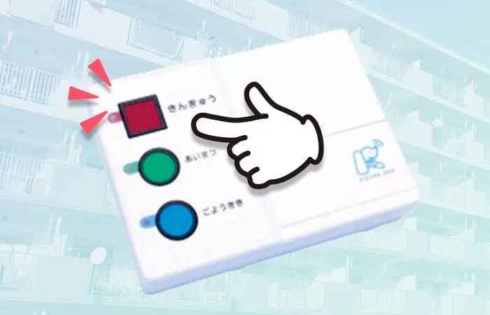 (きんきゅう)緊急通報サービスとしてご利⽤いただけるボタンです。急な体調の変化などで助けを呼びたいときに使⽤します。